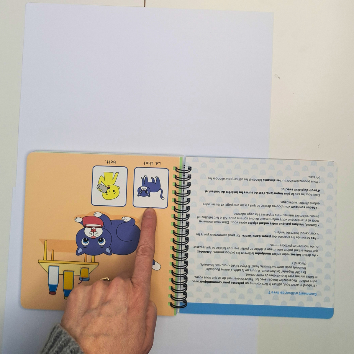 Je montrais la page et pointais les pictogrammes un à un, en les nommant.