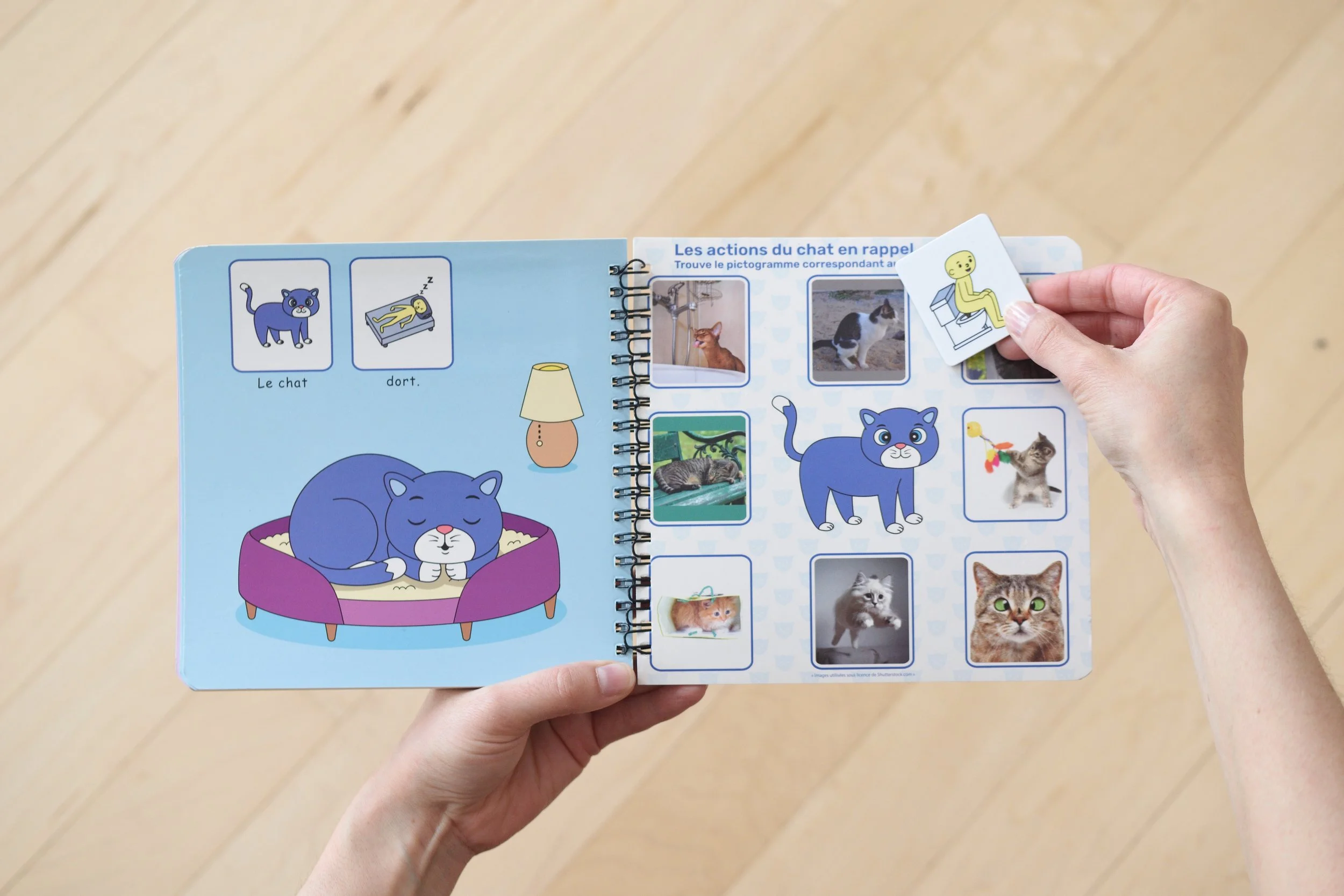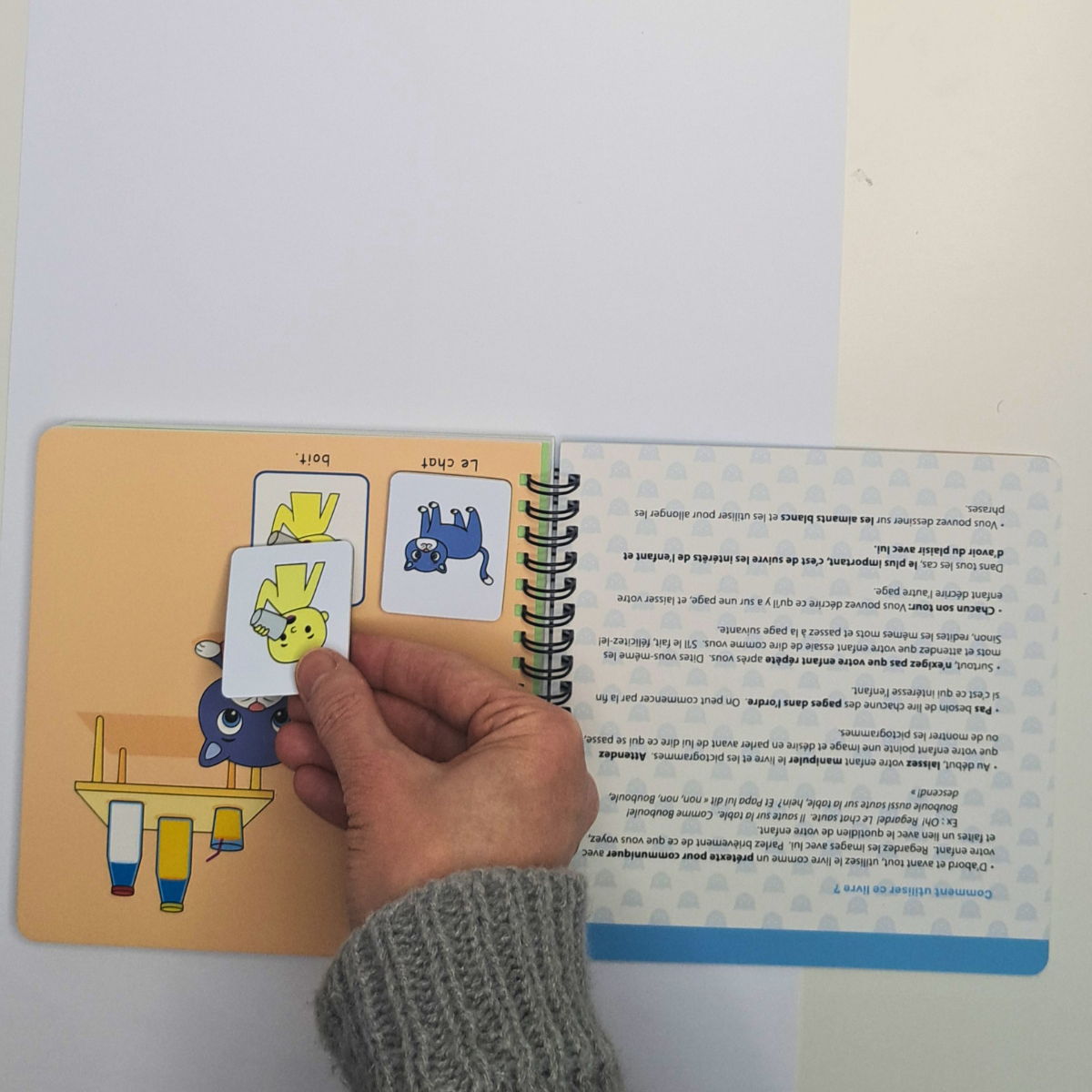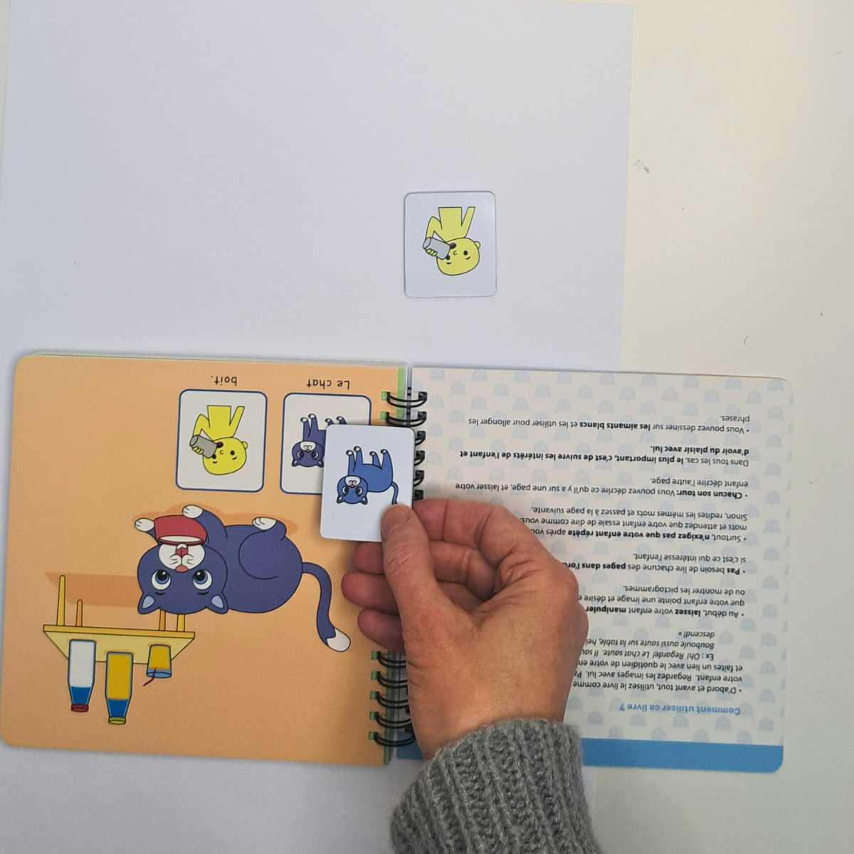 Une fois ce lien établi, j'ai introduit le livre magnétique Symbolicone Le chat en action. Ce choix n'était pas anodin : voici pourquoi ce type de matériel est particulièrement adapté aux enfants autistes.